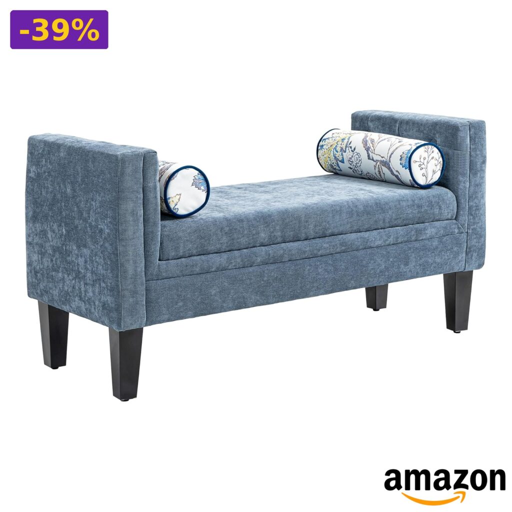 ⭐ HOMCOM – Panca Camera da Letto con Braccioli e Cuscini, Grigio e Nero, 5×45