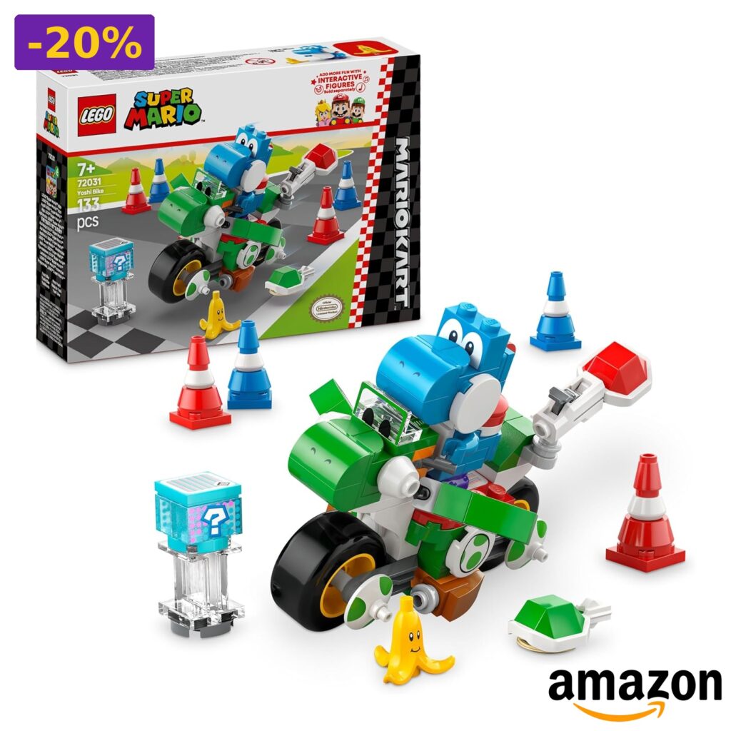 💎 Include il personaggio mario kart di yoshi azzurro e un elemento banana decorato;
