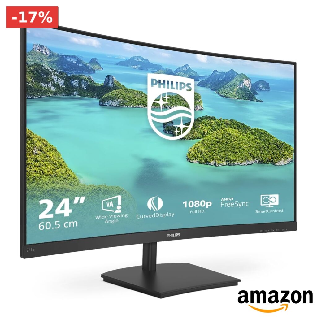 💎 Gaming monitor 24″ full hd 1920 x 1080 con pannello curvo va per ampi angoli di visione;