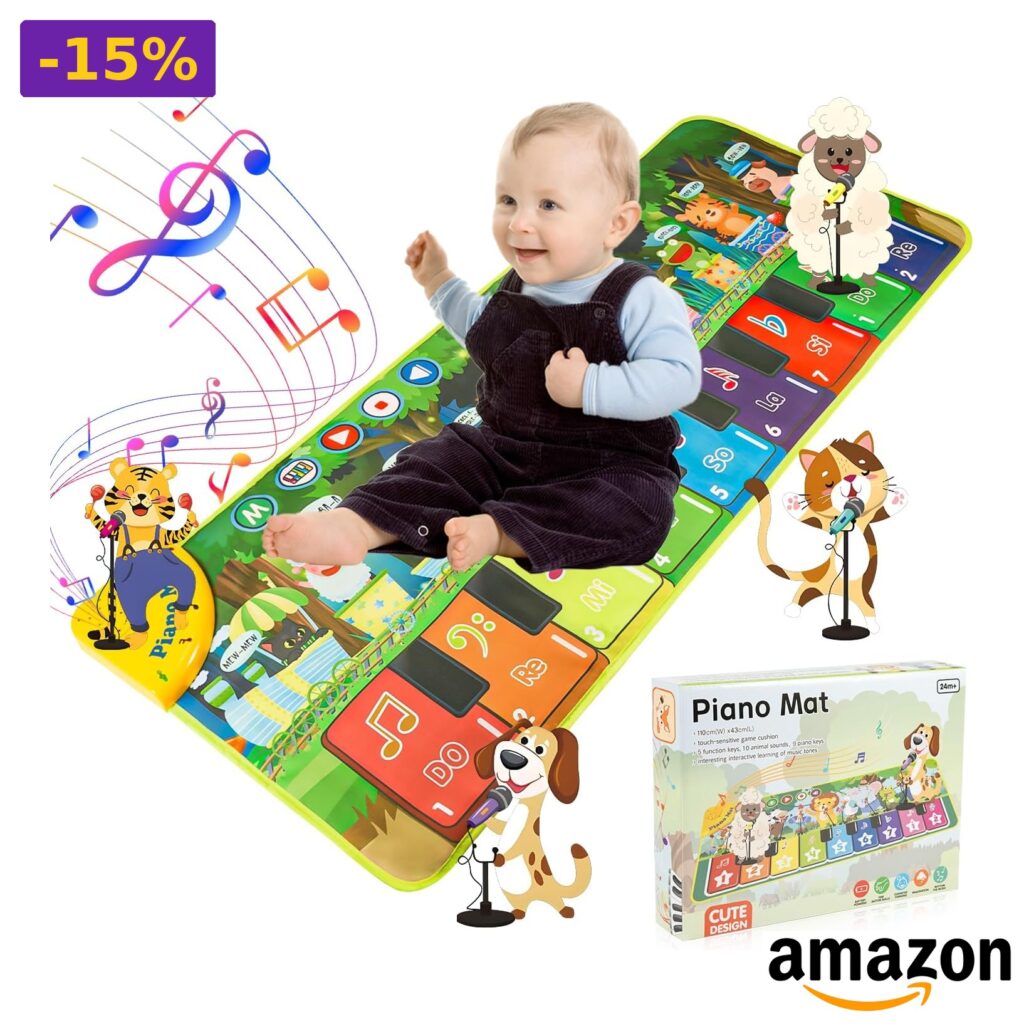 💎 Tappeto pianoforte educativo, 19 brani musicali, 9 tasti pianoforte, 10 suoni animali realistici;