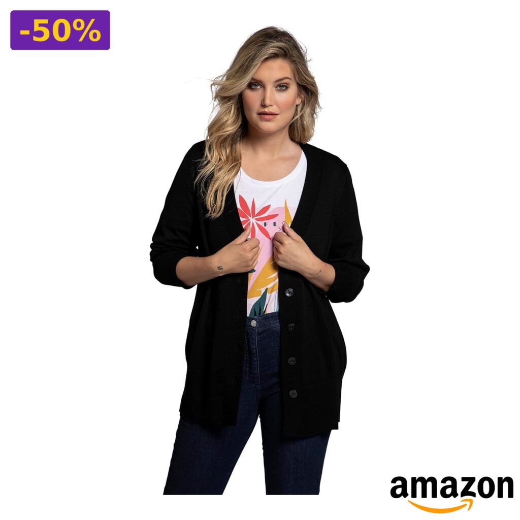 🌈 Ulla Popken – Cardigan in Maglia Fine con Scollo a V