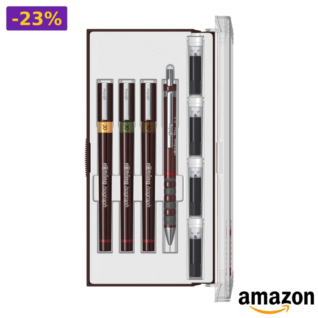 💎 Contiene 3 isograph china, 1 tikky burgundy 0,5, 4 cartucce inchiostro.