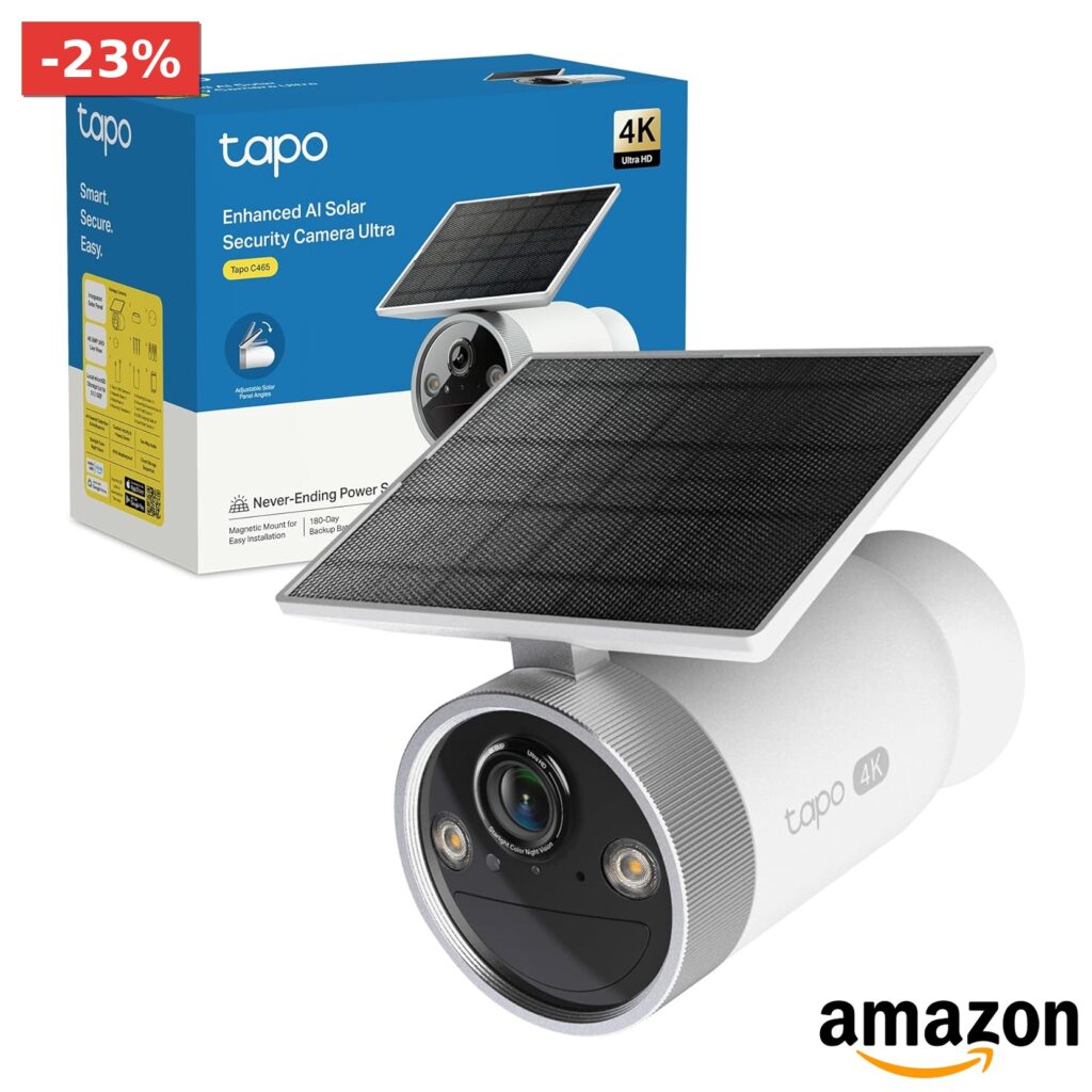🌟 Tapo – Telecamera WiFi Esterno 4K 8MP con Pannello Solare