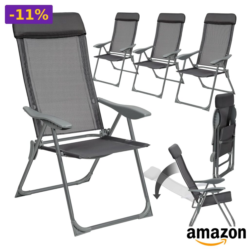 🌟 tectake – Set 4 Sedie da Giardino Pieghevoli con Braccioli