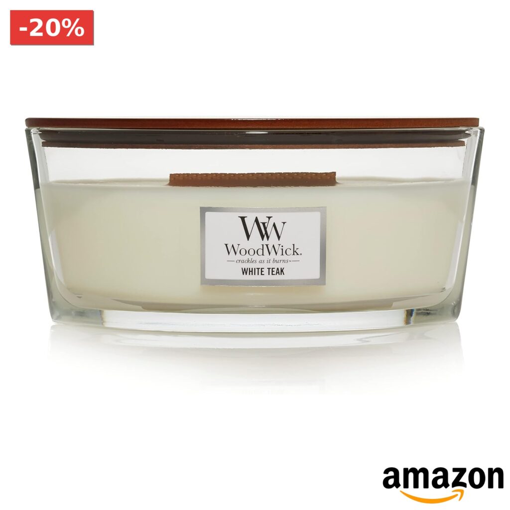 🌟 Woodwick – Candela Profumata Teak Bianco Ellisse