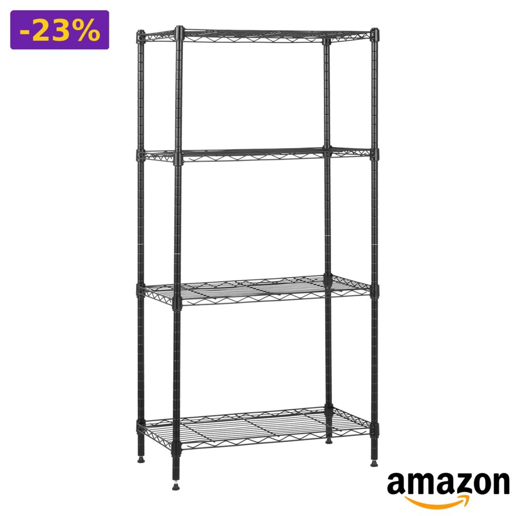 💎 Scaffalatura a 4 ripiani stretti in resistente acciaio nero;