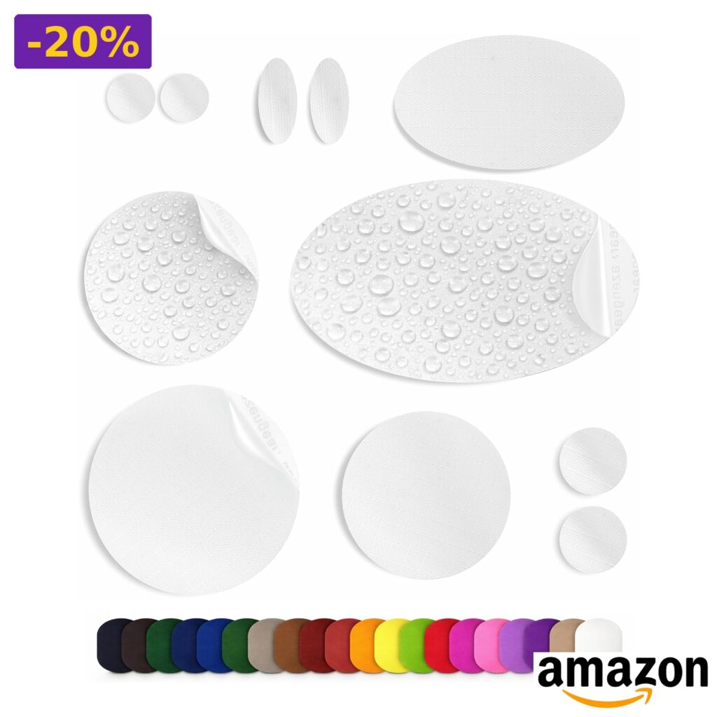 💎 Facili da applicare, pulisci e asciuga l’area da riparare, scegli la toppa adatta e premi bene.