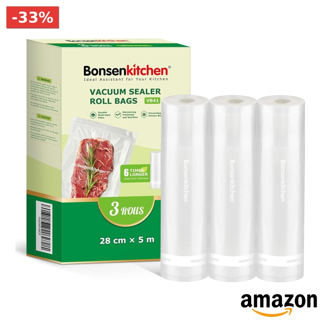 🎈 Bonsenkitchen – Sacchetti sottovuoto per alimenti e cottura Sous Vide, 3 rotoli