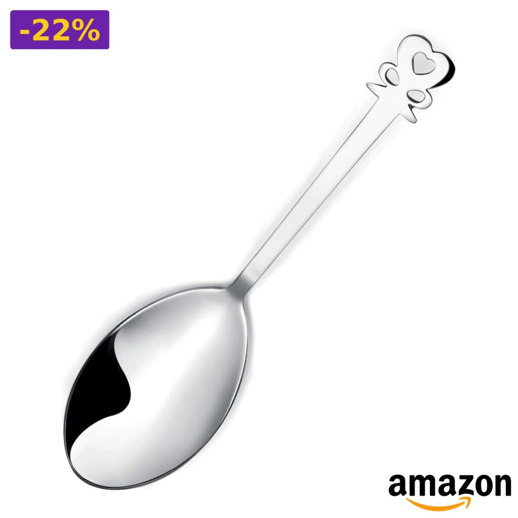 💎 Cucchiaio per confetti in acciaio con decoro contemporaneo sull’impugnatura;