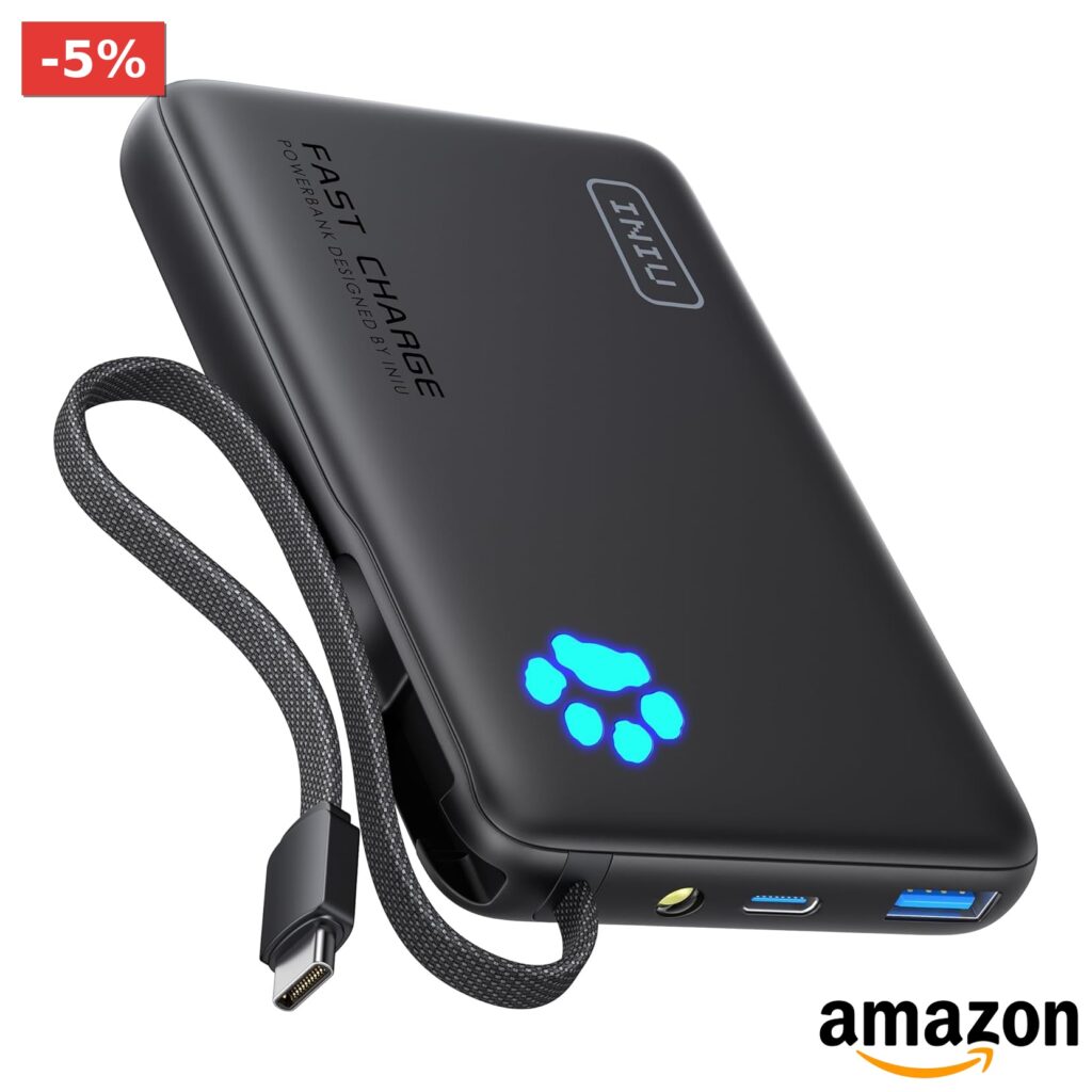 💎 Power bank da 10000mah con cavo usb-c integrato e funzione laccio;