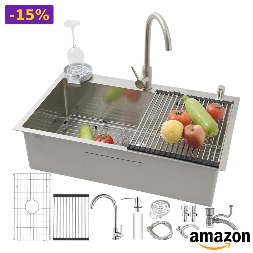 💎 Lavello da cucina a vasca singola, occupa meno spazio e offre più spazio di lavoro;