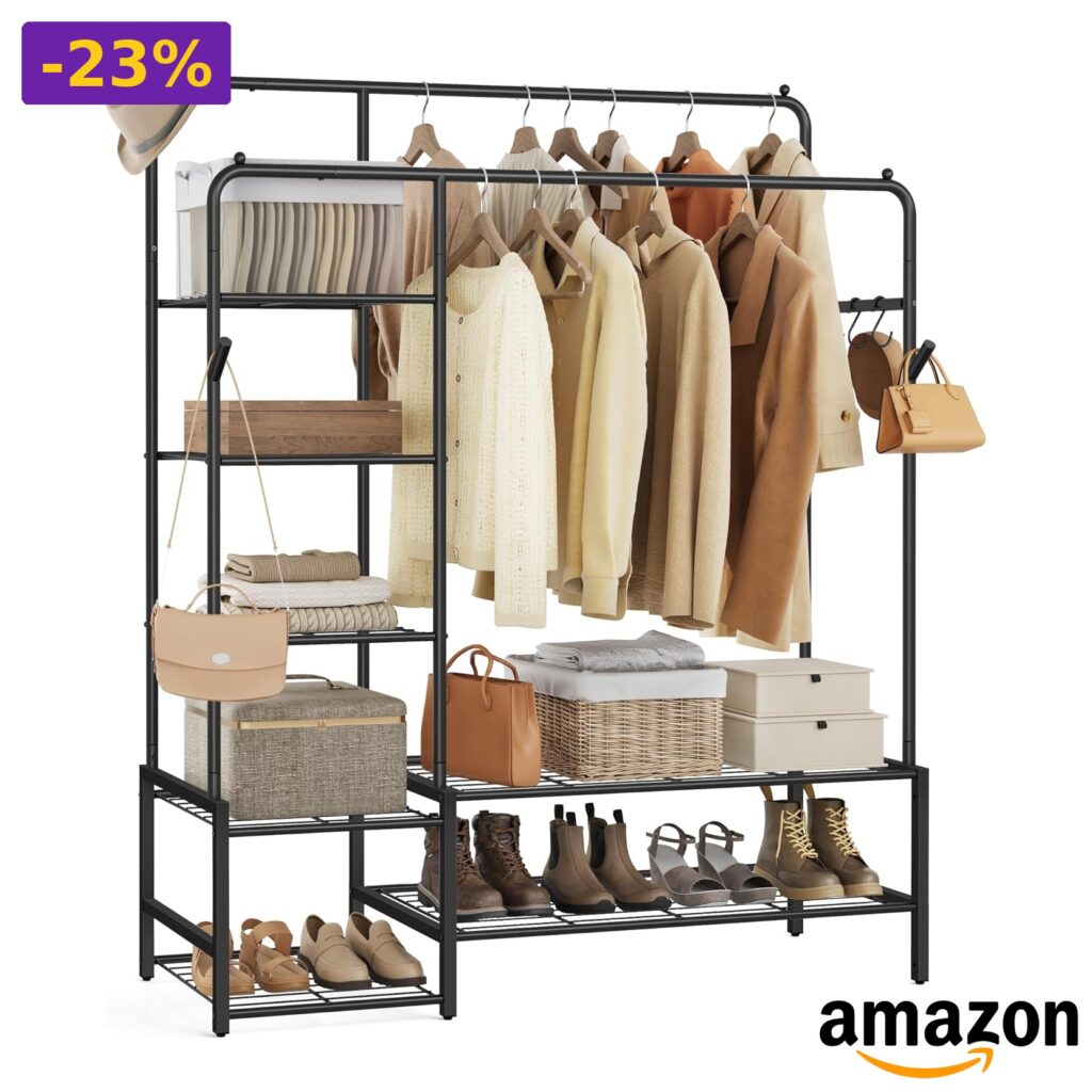 💎 Grande capacità, 2 barre appendiabiti, 7 ripiani, 2 ganci verticali, 3 ganci a s;