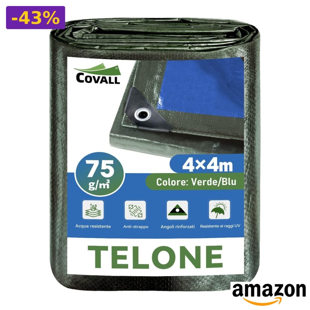 💎 Telo impermeabile in polietilene ad alta densità, 75g/m², doppio rivestimento;