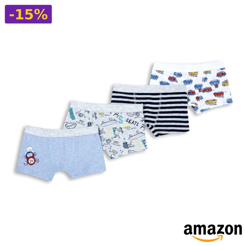 💎 Set di 4 boxer in cotone per bambini, lavabili in lavatrice;