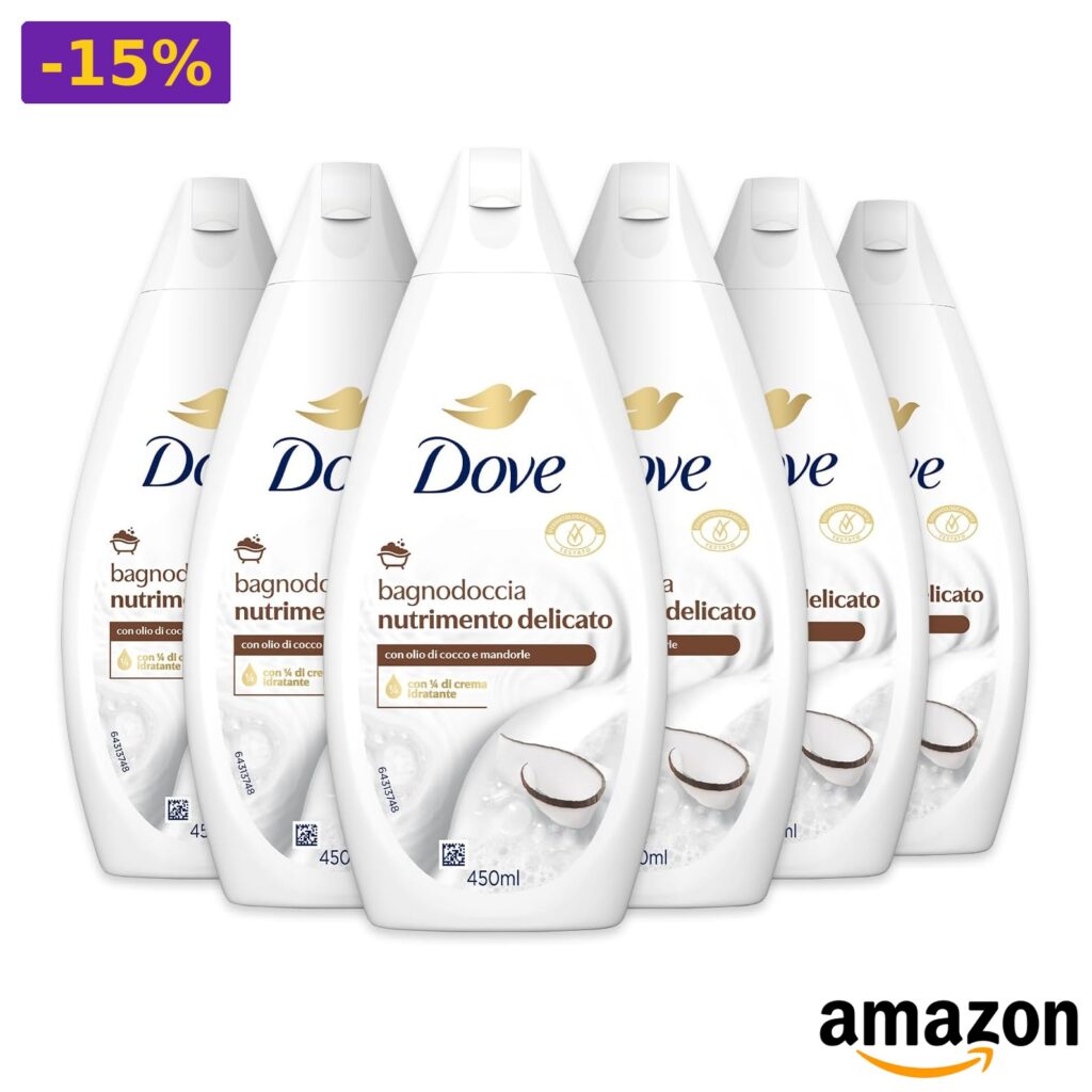 💥 Dove – Bagnodoccia Nutrimento Delicato con Olio di Cocco e Mandorle, 6 pezzi, 450 ml