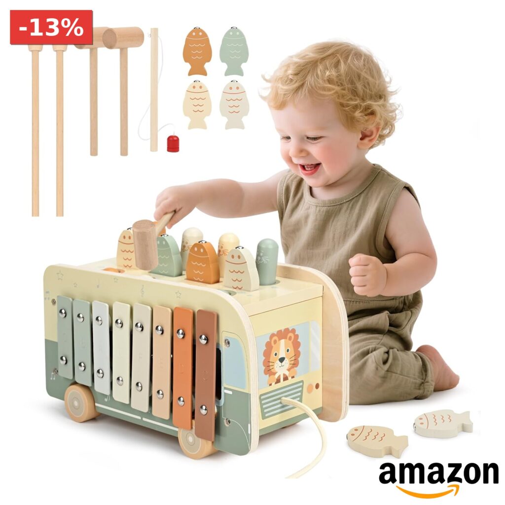 💎 Realizzati in legno di alta qualità e vernice a base d’acqua, sicuri e robusti, ideali come regali per bambini di 1, 2 e 3 anni.