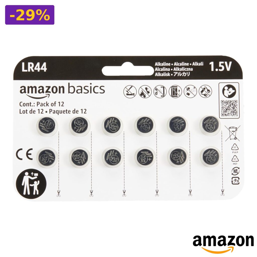 🚀 Amazon Basics – Batterie a bottone alcaline LR44, 1,5 V, confezione da 12