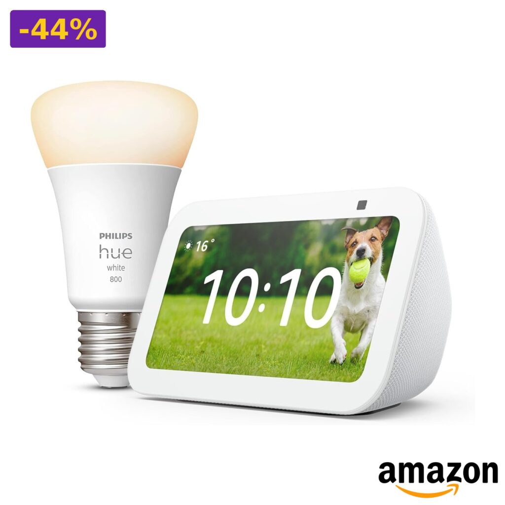 🚀 Amazon – Echo Show 5 Bianco + Philips Hue White Lampadina LED Smart (E27)