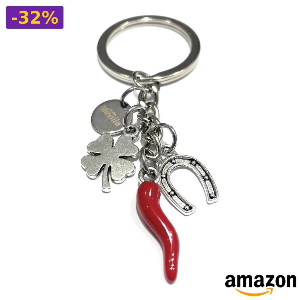 💎 Design made in italy, ciondolo a forma di corno e ferro di cavallo portafortuna.