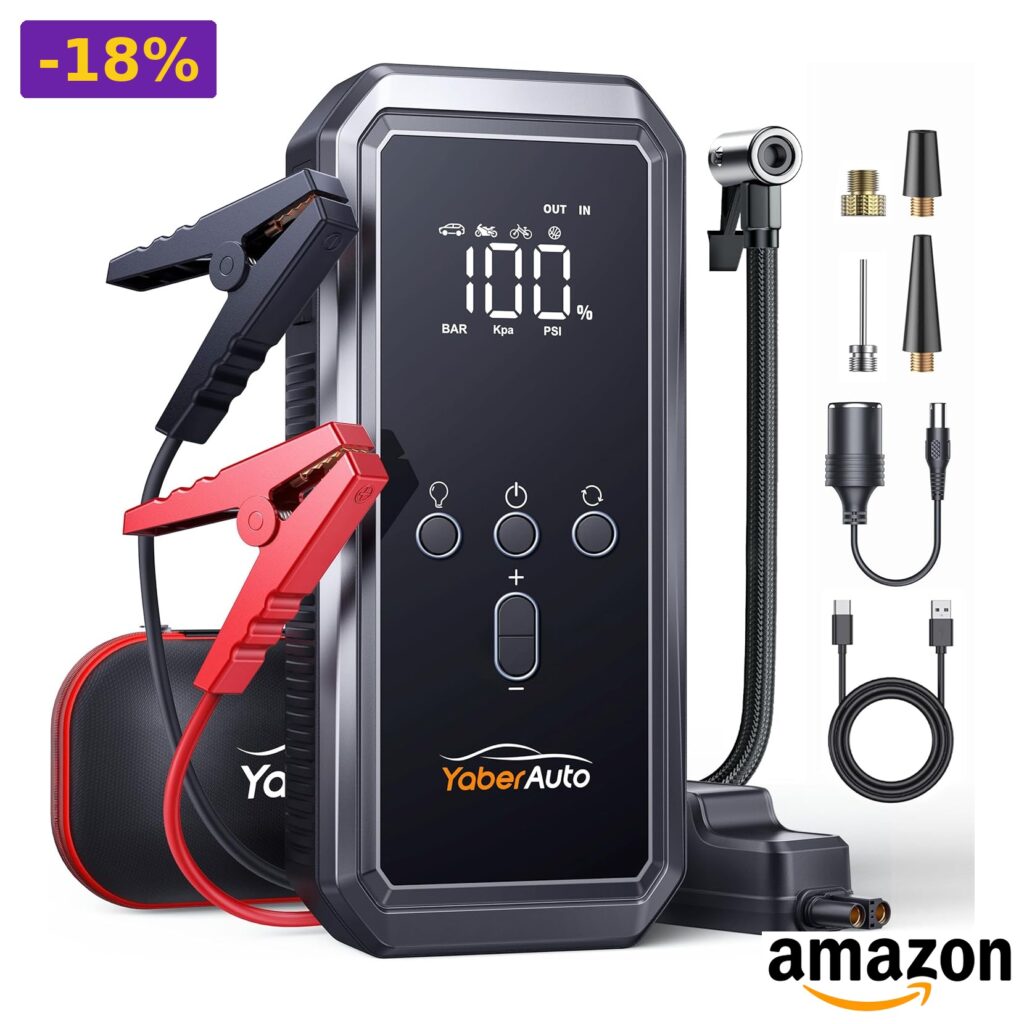 💎 Include booster avviamento auto, 4 ugelli gas, cavo jumper, cavo usb-c, adattatore dc, borsa stoccaggio, manuale d’uso.
