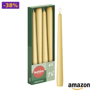 🌟 Bolsius – Candele affusolate beige 24,5 cm, confezione da 4