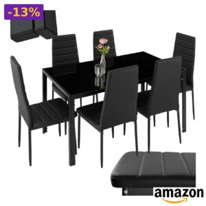 ⭐ tectake – Set Mobili Sala da Pranzo, 6 Sedie Similpelle