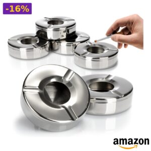 ⭐ com-four – Posacenere in acciaio inox con coperchio rimovibile, 006 pezzi
