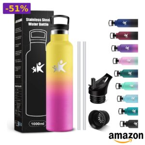 ✨ KollyKolla – Borraccia Termica 1 litro con Cannuccia