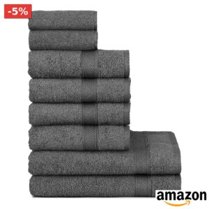 🎉 nottoc – Set Asciugamani Bagno Grigio Antracite, 70×14, 50×9