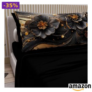 ⭐ PETTI Artigiani Italiani – Completo Lenzuola Una Piazza e Mezza Floreale 22 Nero