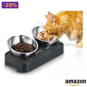 💥 PewinGo – Ciotola rialzata per gatti in acciaio inox con base antiscivolo